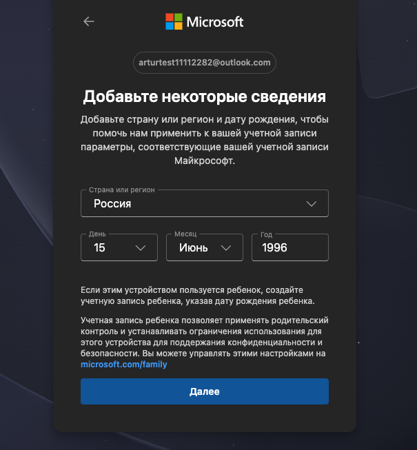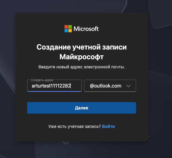Пример: arturtest11112282@outlook.com