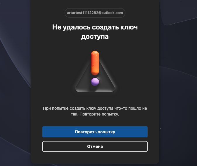 Если сервис предложит создать ключ доступа, нажмите «Отмена».