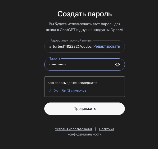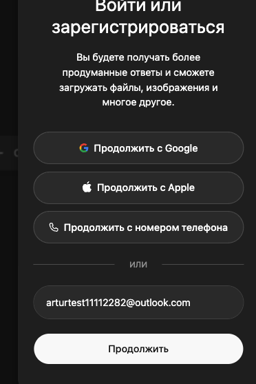Если у вас уже есть подходящая почта, раздел с созданием Outlook можно пропустить и сразу перейти к регистрации в ChatGPT.