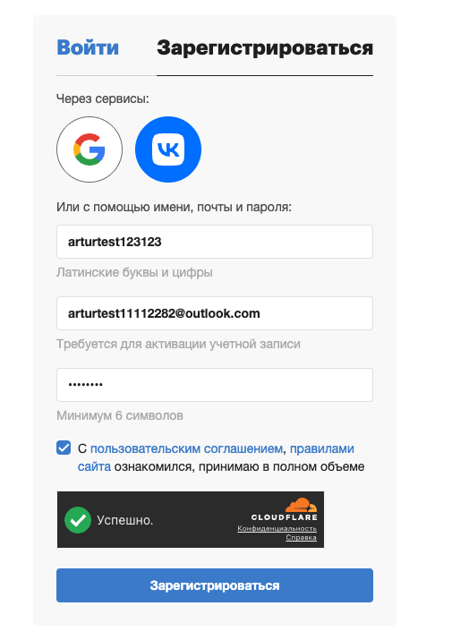 Сервис предлагает несколько способов регистрации.