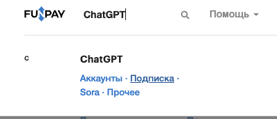 Или открыть нужную категорию напрямую: Категория ChatGPT на FunPay