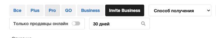 В фильтрах выберите Invite Business, а в поиске введите 30 дней.