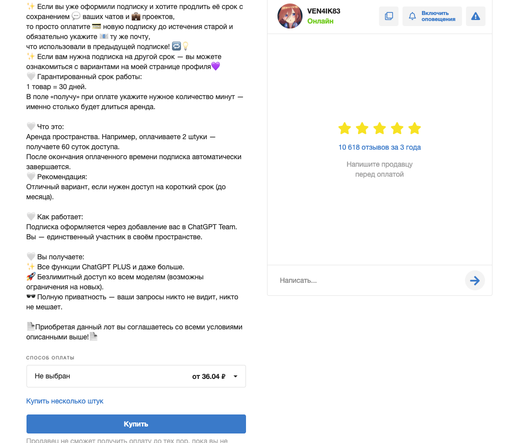 Интерфейсы сервисов, условия продавцов и доступность лотов могут меняться. Перед оплатой внимательно читайте описание товара, условия выдачи и отзывы о продавце.