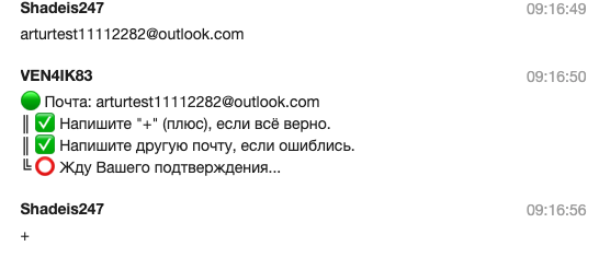 В чате появится сообщение о том, что нужно отправить адрес электронной почты.