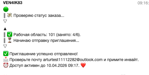 После принятия приглашения откроется доступ через рабочую область.