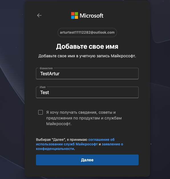 Пример: arturtest11112282@outlook.com